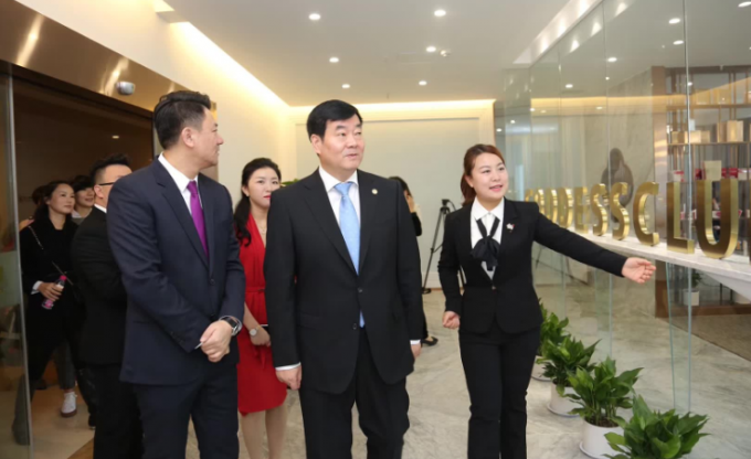 李南陪同袁晓峰董事长(中)视察首家“婧媛荟”