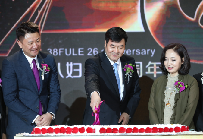 袁晓峰董事长(中)和李南同庆三八妇乐26周年